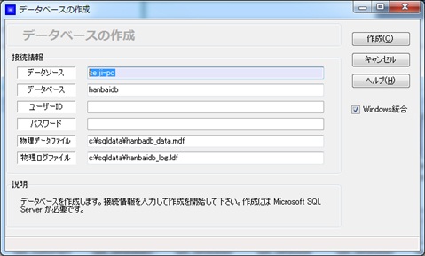 | Windows統合のチェックを外した時の SQL Server のパスワードを指定します。 |
