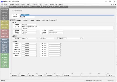 基本情報では会社名や住所、会計期間、コード情報など自社に関する基本的な情報を登録します。