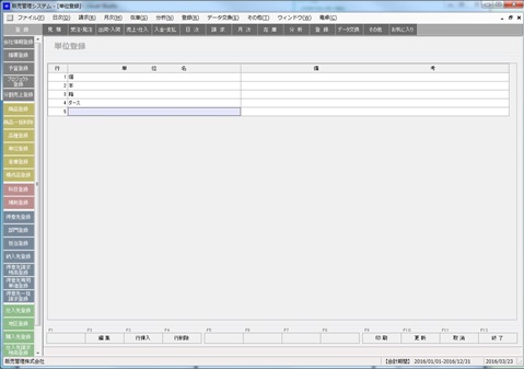 単位を登録します。登録メニューから単位登録を選択して起動します。