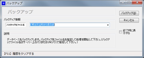 終了時に表示するをチェックするとシステム終了時にバックアップ画面を起動します。