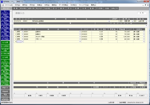 原価日付を入力します。日付欄では入力区分を変更できます。また入力済み伝票の複写などを行うこともできます。