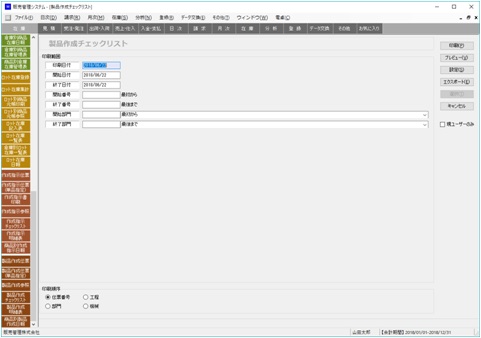 | 製品作成チェックリストを印刷する順序を指定します。ここで指定した順序で印刷範囲を指定します。 |