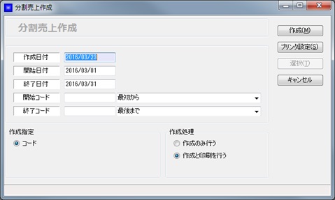 分割売上登録で登録した内容に従って売上伝票を起票します。