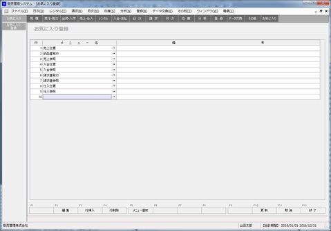 お気に入りメニューを登録します。ログインユーザー毎によく使うメニューをお気に入りに設定します。その他メニューからお気に入り登録を選択して起動します。